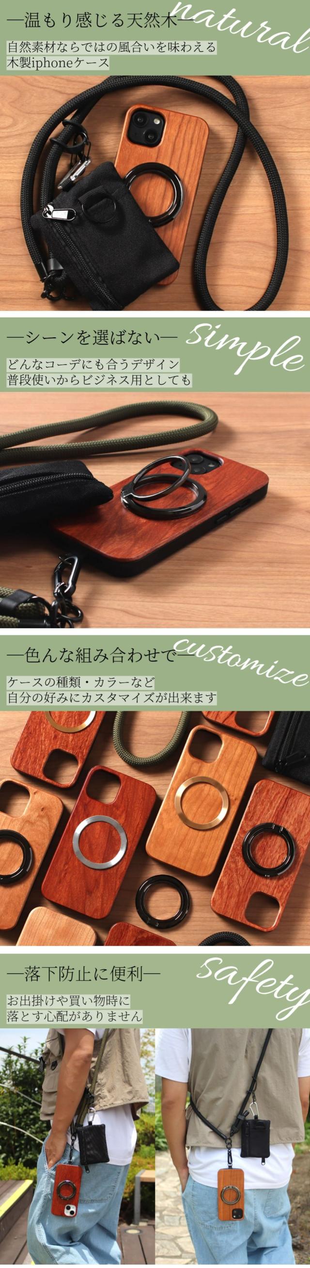 iphone ケース 木製 リング付き iphone17 iphone16 iphone15 iphone14 マグセーフ megsafe ショルダー ストラップ 小銭入れ マグネット アイフォン 17 16 15 14 13 12 se3 se2 ウッド スマホリング カード収納 お財布 17pro air 16pro 13mini メンズ メタリック 送料無料