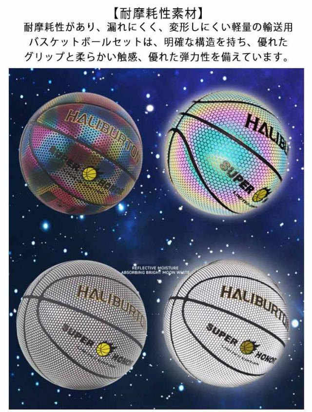 ジュニア用 バスケットボール 反光PU革 高校 中学 バスケットボール 光るバスケットボール ボール 光るバスケットボール トレーニングツール 反射 7号 屋外 ナイトゲーム 夜練習 大学 大人用 子供用 5号