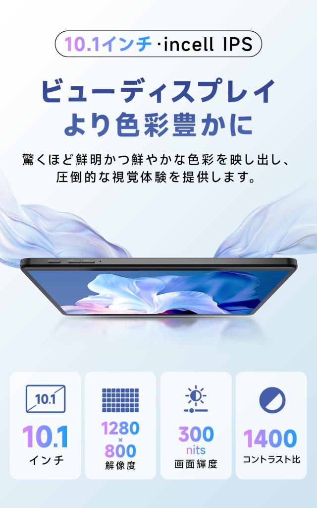 | ディスプレイ | 10.1インチ 1280×800 Incell IPSパネル | |||||