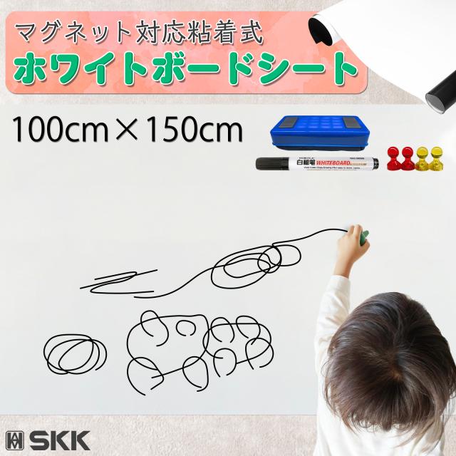 マグネットシート 強力 壁 ホワイトボードシート マグネット 紙 はがせる ロール 白 100cm 150cm 磁石シート シール カット可能 マーカー イレーサー マグネット 付属 お絵かき 落書き ボード