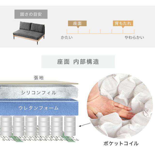座面:ポケットコイル/30Dウレタン/シリコンフィル綿