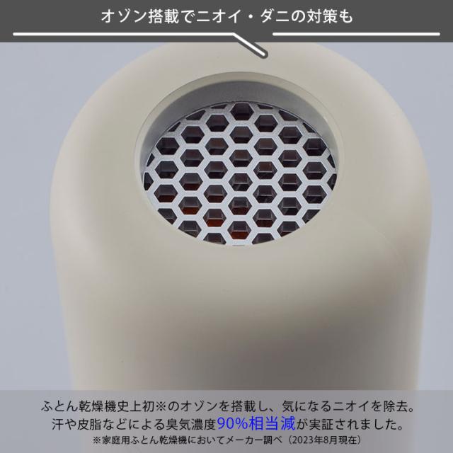 ふとん乾燥機史上初※のオゾンを搭載し、気になるニオイを除去。 汗や皮脂などによる臭気濃度90%相当減が実証されました。 一般的にベッドに数百万〜数億匹が住み着いていると言われているダニも対策可能です。 ※家庭用ふとん乾燥機においてメーカー調べ(2023年8月現在) |