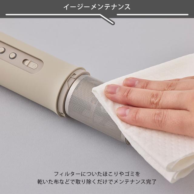 お手入れも簡単で、連続稼働できるため家族とシェアしてお使いいただけます。 フィルターについたほこりやゴミを乾いた布などで取り除くだけでメンテナンス完了です。 |