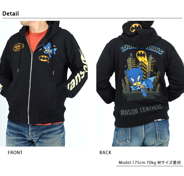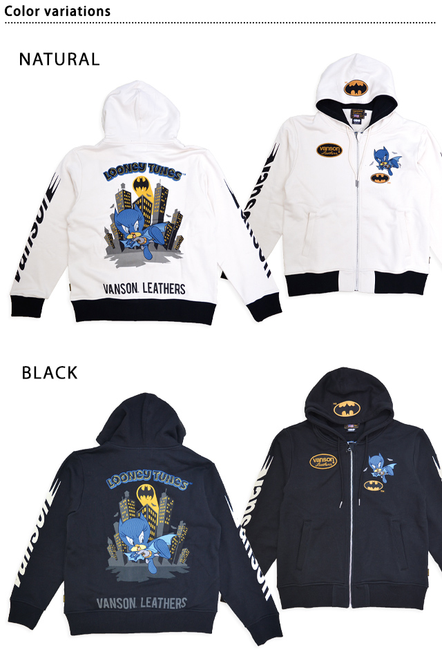 vanson×LOONEY WARNER BROS.100周年記念モデル 裏毛フルジップパーカー vanson LTV-2503 バンソン ヴァンソン バットマン