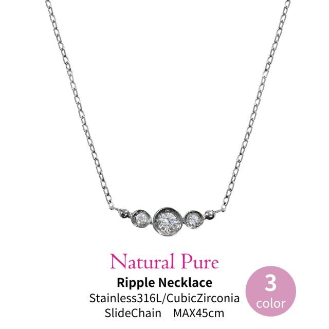 アレルギーを誘発しにくい、敏感肌に優しい最高位の医療用ステンレス316Lに、AAAクラスのキュービックジルコニアをあしらったリップルネックレス。