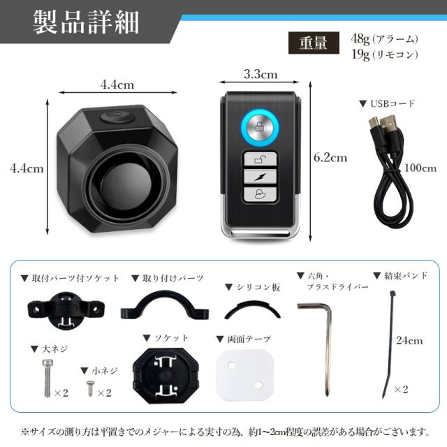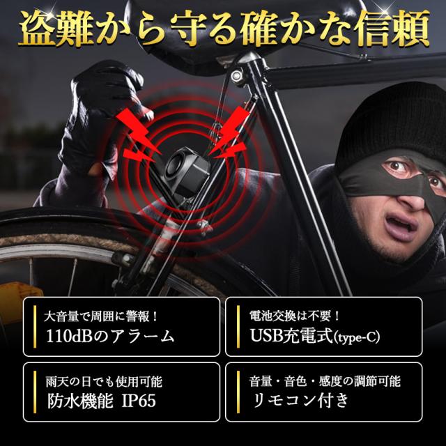 盗難防止アラーム 盗難 盗難防止 アラーム 防犯 自転車 バイク キックボード 盗難対策 大音量 リモコン コンパクト 防犯ブザー バイク盗難防止 グッズ 防犯ブザー 3段階音量調整 7段階振動感度 威嚇音 防水機能 防水 USB充電式 USB 電池交換不要 110dB シンプル