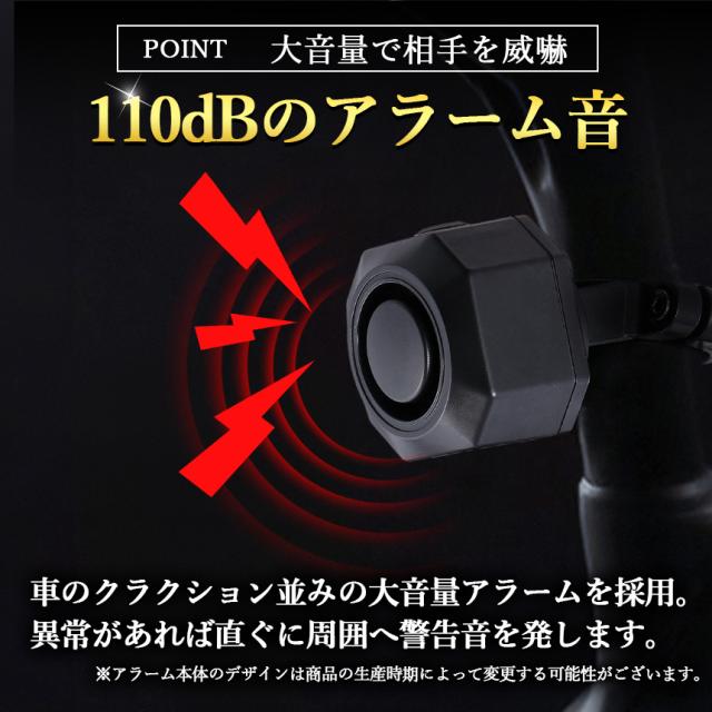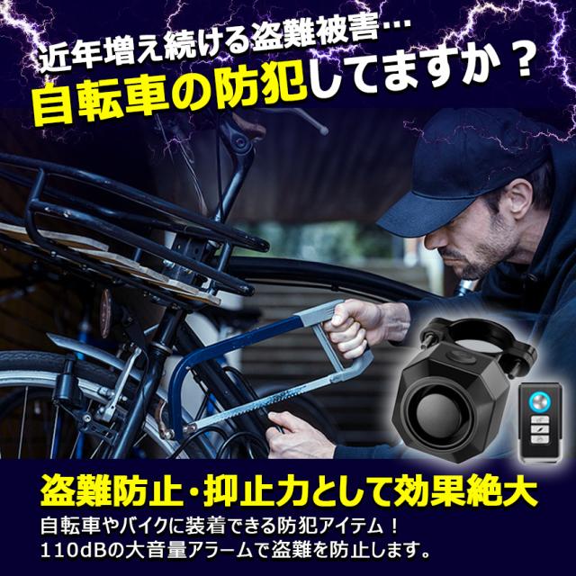 ●振動を感知したら大音量で警告!盗難防止アラーム●こちらの商品は自転車やバイク、キックボード等にお使いいただけます。近年増え続ける盗難被害…防犯対策していますか?盗難防止・抑止力として効果絶大!自転車やバイクに装着できる防犯アイテム!110dBの大音量アラームで盗難を防止します。