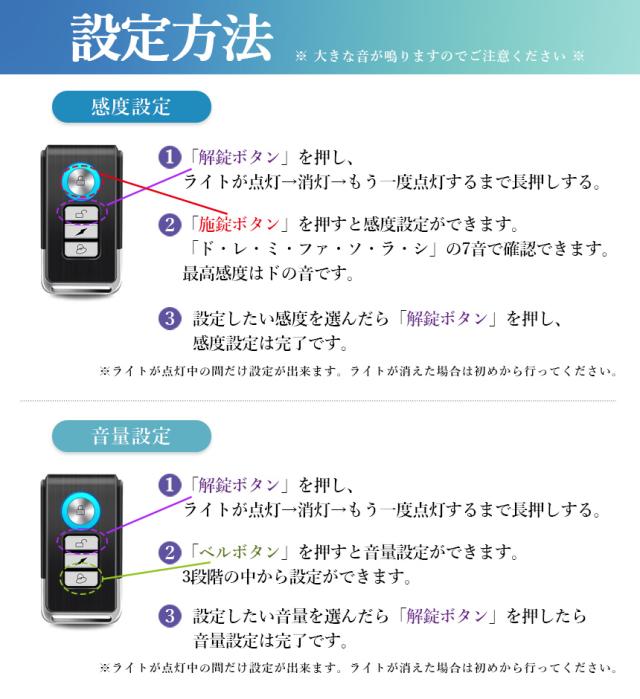 <設定方法>※大きな音が鳴りますのでご注意ください※