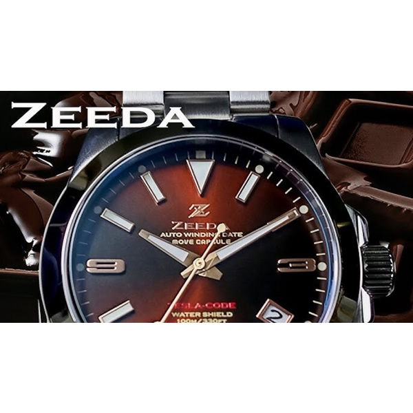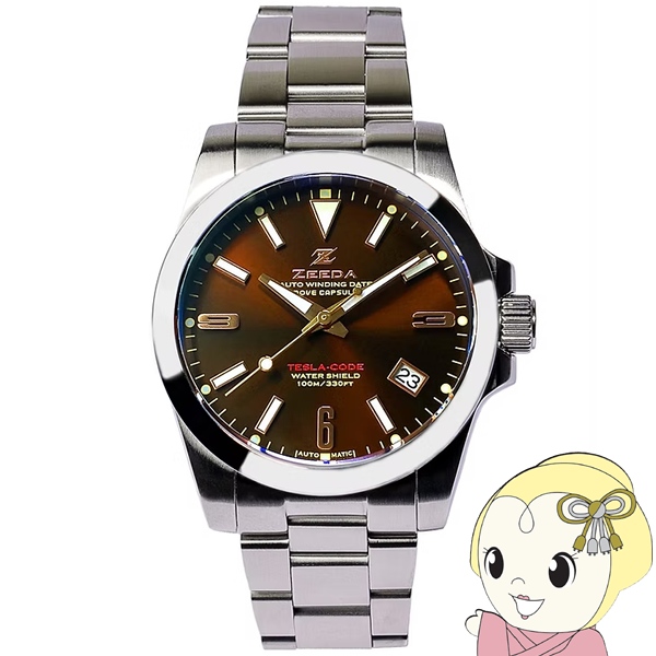 在庫限り ZEEDA(ジーダ) メンズ腕時計 「TESLA-CODE」 ステンレス 10気圧防水 自動巻き 38mm TES-BRN チョコレートブラウン