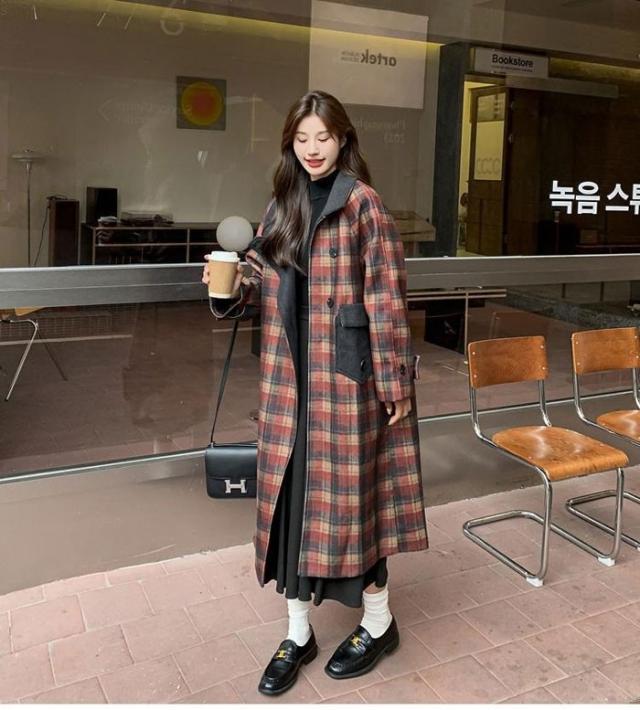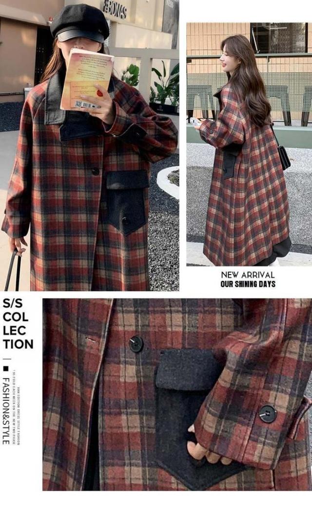 ロングチェスターコート レディース 超ロング 秋冬 アウター 長袖 ぽっちゃり オーバーサイズ カジュアル あったか 暖かい きれいめ 大人可愛い 体型カバー チェック柄 ブラウン d7077c0c0m5