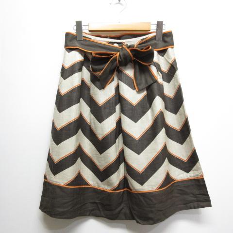 【中古】アナイ ANAYI ウエストリボン フレア スカート 総柄 38 茶×ベージュ 裏地付き 日本製 レディース