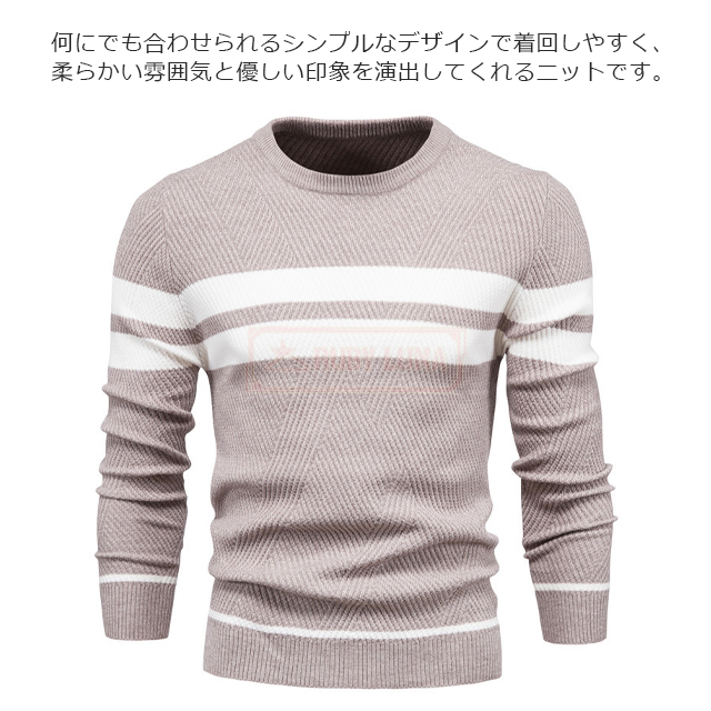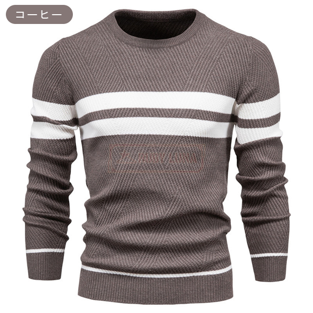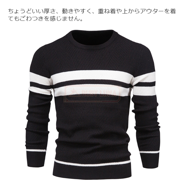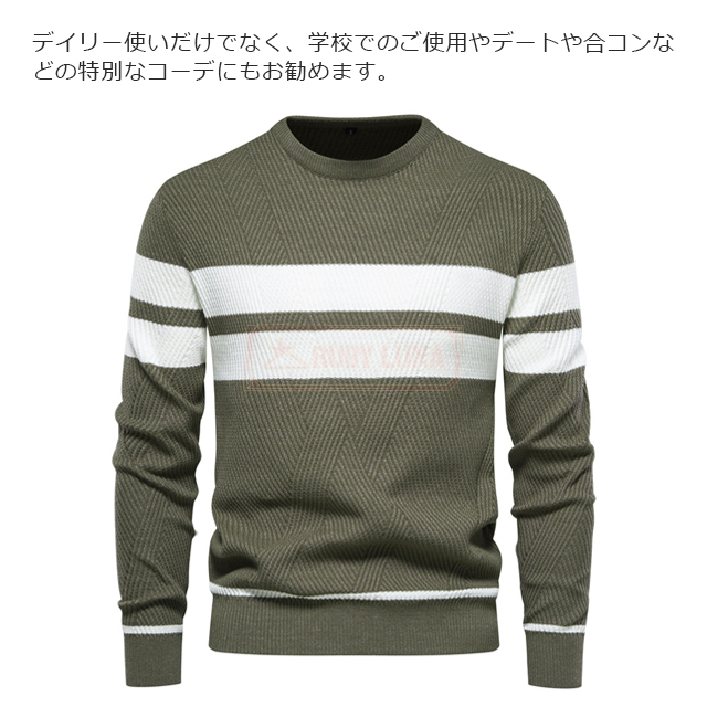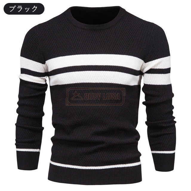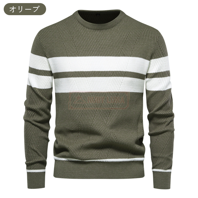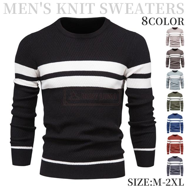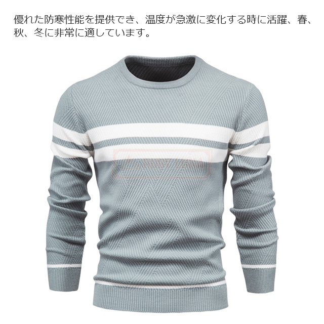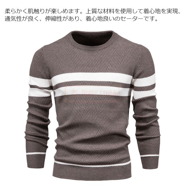 最安挑戦 春新作 送料無料 新作 セーター メンズ トップス プルオーバー パーカー 秋冬 暖かい 防寒 普段着 ニットセーター ストライプ柄 クールネック カジュアル リブ編み 細身 かっこいい 着回し 通勤 お出かけ カットソー