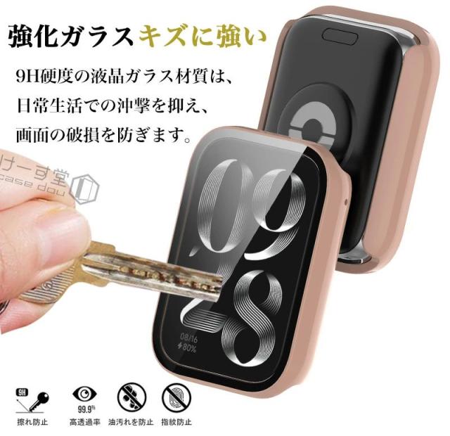 Xiaomi Smart Band 9 Pro ケース フィルム+PCフレーム カバー Xiaomi Smart Band 8 Pro ケース ガラスフィルム クリア シャオミ スマートバンド9プロ ケース スマートバンド8プロ 保護カバー Band9Pro ケース 強化ガラス 全面 液晶保護 フィルム 耐衝撃ハードカバー 傷防止