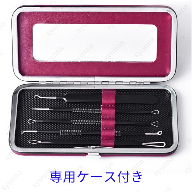 ●毛穴の角栓や、鼻周りの黒ずみ、黒ニキビ、白ニキビのケアに最適なプロ仕様のツール5本セットです。