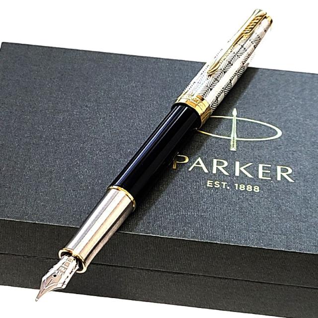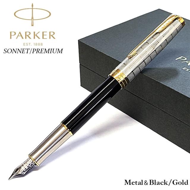 万年筆 パーカー 美しい ソネット プレミアム メタル&ブラック 高級 ブランド 文房具 シルバー PAKER シンプル かっこいい おしゃれ