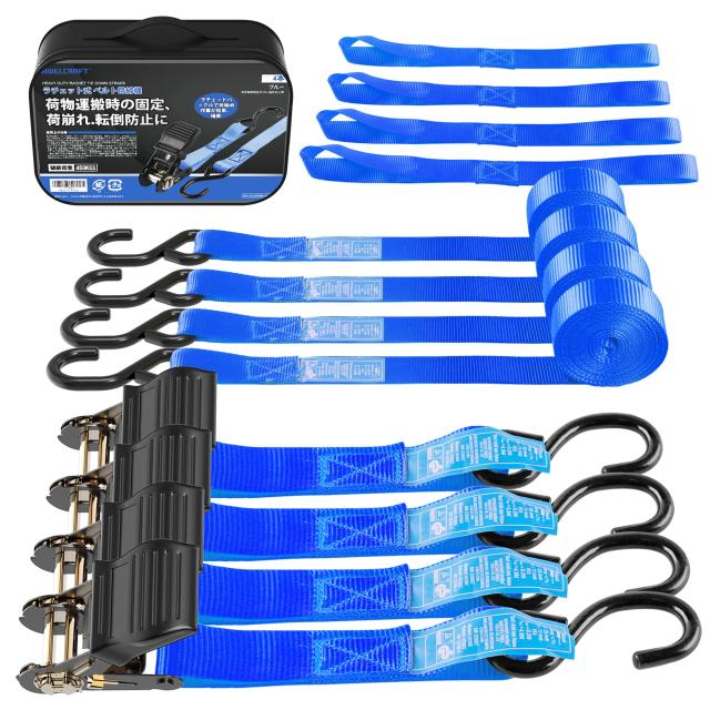 AWELCRAFT ラチェット式タイダウンベルト 4.5Mx4本 GS認証取得済み 破断荷重450KG 荷締めベルト 幅25mm ラッシングベルト 荷締機 固定