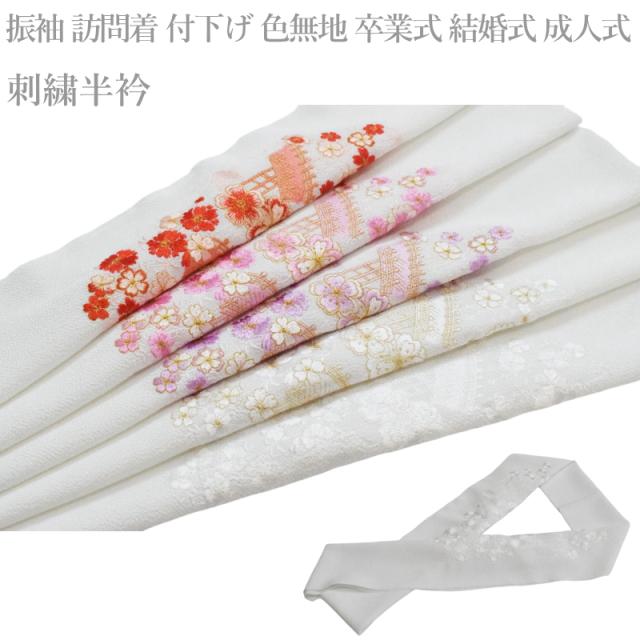 メール便 送料無料 刺繍 ちりめん 半衿 No.141-145(刺繍半衿 洗える 半衿 半襟 ちりめん 刺繍 縮緬/礼装 正装 振り袖 成人式 結婚式 )