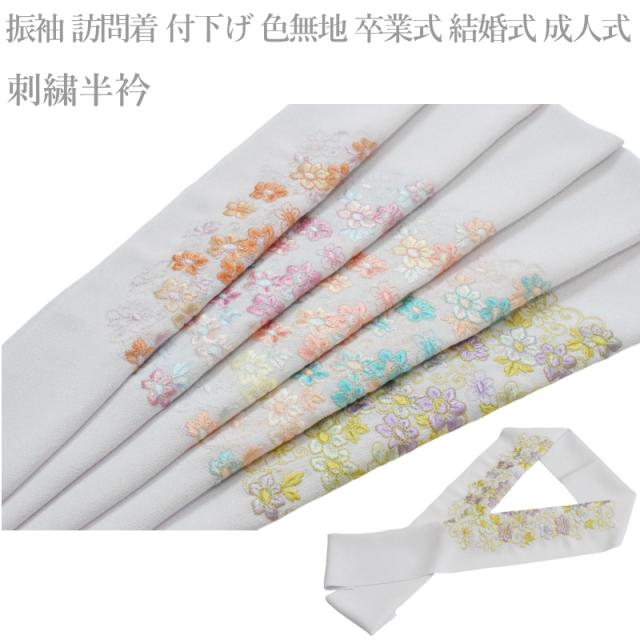 メール便 送料無料 刺繍 ちりめん 半衿 No.146-150(刺繍半衿 洗える 半衿 半襟 ちりめん 刺繍 縮緬/礼装 正装 振り袖 成人式 結婚式 )