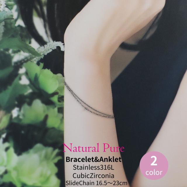 アレルギーを誘発しにくい、敏感肌に優しい最高位の医療用ステンレス316Lに、AAAクラスのキュービックジルコニアをあしらったブレスレット兼アンクレット。