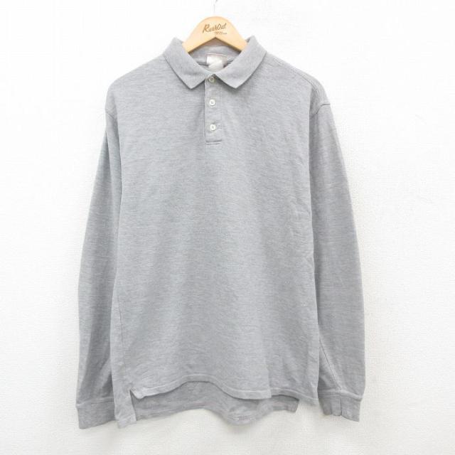 古着 ヘインズ Hanes 長袖 ポロ シャツ メンズ 00年代 00s 鹿の子 グレー Mサイズ 中古 トップス 中古 古着