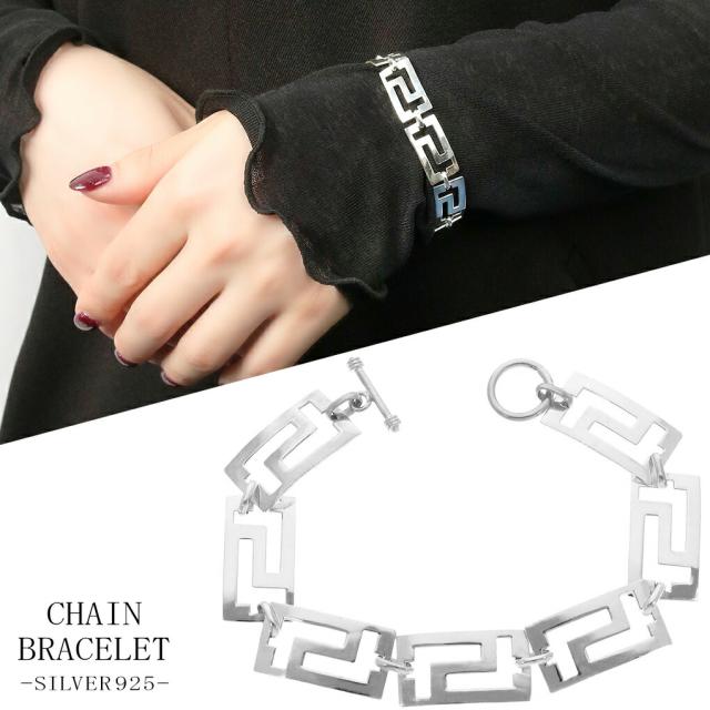 マンテル シルバー チェーンブレスレット スクエア 透かし 模様 18cm ブレスレット チェーン ブレス 腕輪 シンプル マンテルブレスレット メンズ