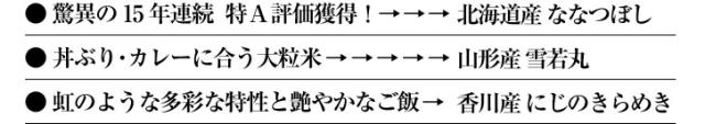 - お米の食べ比べができるような 商品を注文しました。前から食べたかったしんのすけがあり楽しみにしてます。おまけにいただけたハツシモもつやつやあっさり大変おいしかったです。ありがとうございました。