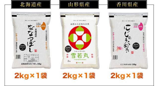 新米 ごはんソムリエ厳選3種食べ比べ【梅】 北海道産 ななつぼし + 山形産 雪若丸 + 香川産 にじのきらめき 白米6kg(2kg×3袋)【送料無料・窒素充填包装】【即日出荷】お米 令和7年産 2025年産