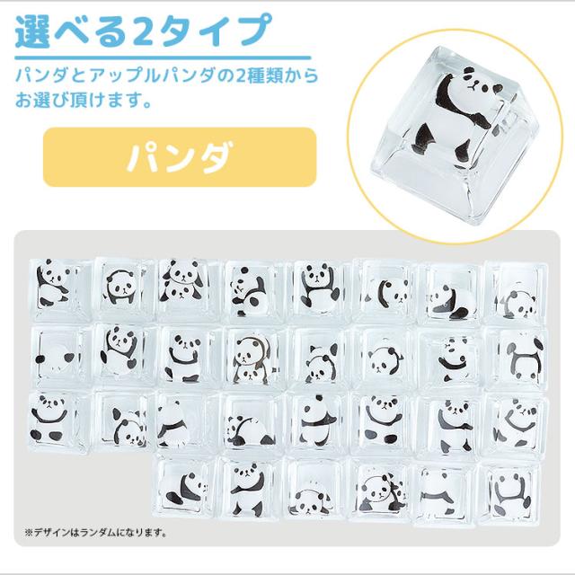 透明なキーキャップの中にいるパンダがキーボードに可愛らしいアクセントを加えます。