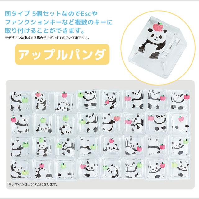 パンダ キーキャップ 5個セット キーボード用 キートップ 可愛い かわいい ぱんだ メカニカル キーボード用 ゲーミング キー 装飾 メカニカルキースイッチ用 交換 カスタマイズ りんご アップル パンダ柄 PR-PANDACAP-5ST【メール便 送料無料】