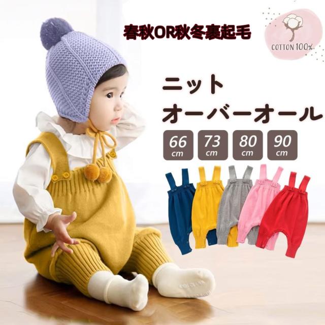 オーバーオール サロペット ニット カバーオール ロンパース 新生児 赤ちゃん ベビー 服 女の子 男の子 70 80 冬 出産祝い 乳児服 春秋 暖かい 防寒 防寒対策