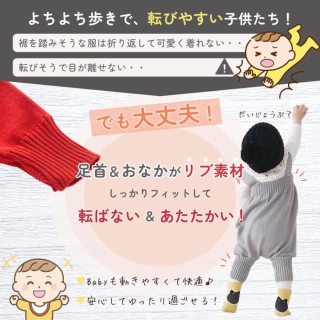 秋冬の寒い季節に嬉しいニット素材のオーバーオール。すっぽりお腹を包んで暖かく、生地が柔らかいのでかさばる心配もなく軽いのでとても着やすいです。