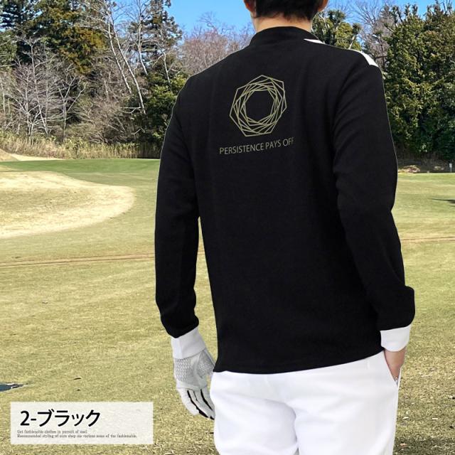 M~XXL 新作 ゴルフウェア メンズ モックネックシャツ GIORNO SEVEN ジョルノセブン ハイネック トップス 長袖 ポロシャツ 配色切替 バックプリント ブランド おしゃれ 春夏 秋冬 送料無料 ゆうパケ