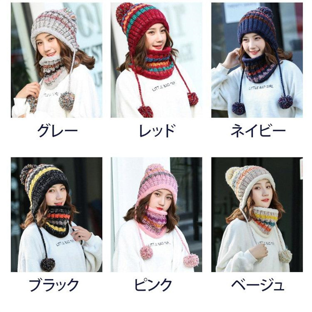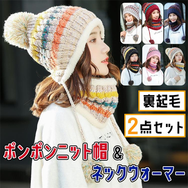 ニット帽 レディース 冬 秋冬 ネックウォーマーセット マフラー ニットキャップ ニット帽子 耳当て付き帽子 裏起毛 大人可愛い 冬物 防寒 大きいサイズ ポンポン 送料無料