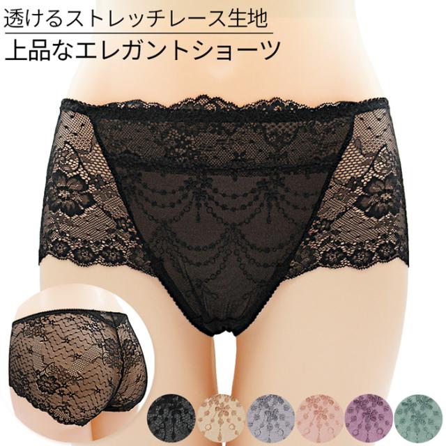 ショーツ レディース スタンダード レギュラー フルバック 総レース セクシー 透ける 刺繍 上品 ストレッチ 大きいサイズ 下着 黒 紫 緑 M L LL 3L 4L rs-009