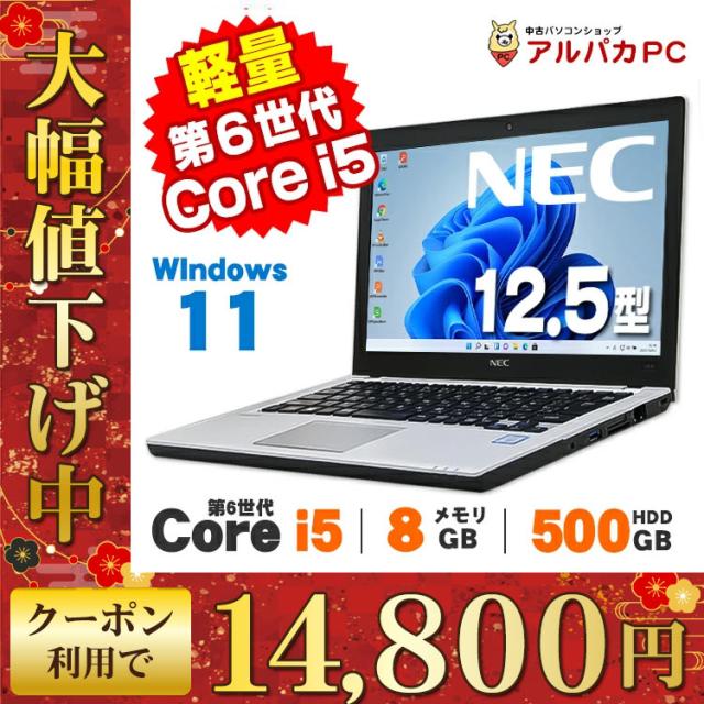 訳あり ノートパソコン 中古 Windows11 NEC モバイルノート 12.5インチ 第6世代 Core i5 6200U以上 メモリ8GB HDD500GB 無線LAN Windows11 Pro Office付き 軽量 モバイル タイムセール