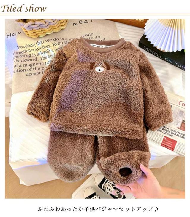 ガールズ ボーイズ もこもこフリース パジャマ 子供服 キッズ 女の子 ルームウェア シャギー 長袖ルームウェア 上下セット 犬柄 パジャマ キッズ 冬 暖かい 80 90 100 110 120 130 140 150 送料無料