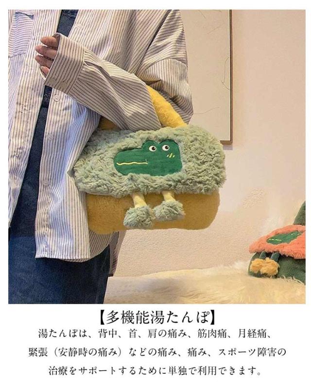 湯たんぽ 可愛い 生理期 柔らか お湯入れ エコ湯タンポ ゆたんぽ 手提げ 湯たんぽ 保温カバー付き 柔らか 電気不要 あったかグッズ 防爆 防寒グッズ 足 もふもふ 暖房器具 お湯入れ 腰を温め 冷え対策 ギフト ワニ 繰り返し プレゼント