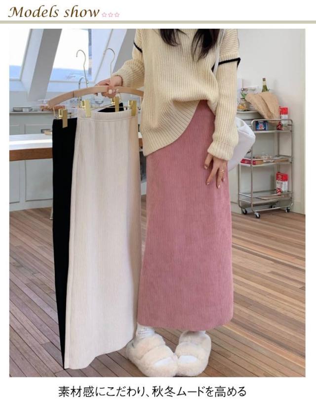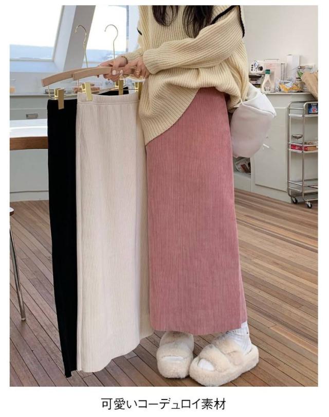 | 裏起毛あり 裏起毛なし2タイプ選べる レディースタイトスカート 素材感にこだわり、秋冬ムードを高める 可愛いコーデュロイ素材 秋冬のあたたかい印象を与えるコーデュロイ素材タイプは、 保温性が高く、カジュアルから少しフォーマルなスタイルまで幅広く対応できます。 | |