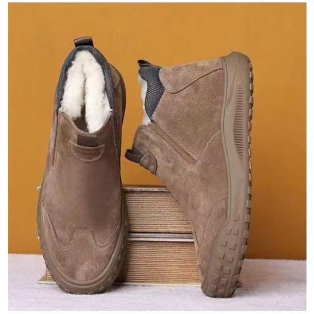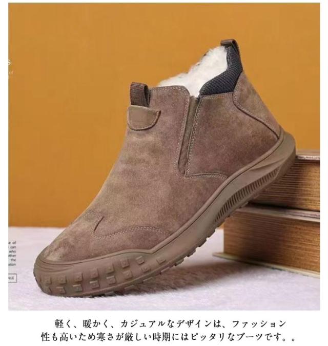 | 凍える寒さから足元を守りデイリーに合わせやすい防寒ブーツ 【素材】表地は優秀なスエードを採用します。ライニングの素材は高品質なポリエステルです。ソールは上質なゴムです。 【防水】防水素材使用。防水構造のデザインを取って、一定の通気性機能を備えます。歩く時、水の出入りを防ぎることができ、優しくて快適な歩行を実現しています。 【滑り止め】アウトソールは滑り止め機能搭載で、滑りにくいから安心して歩きます。クッション性でストレスが吸収され、足が疲れません、天然ゴムは摩擦にも強いから、長く持ちます。 【保温性】シューズ内部に高密度のある保温ボアを採用し足を柔らかく優しく保温、暖かく快適です。 【適用対象】男性、女性、学生、両親。通勤、通学、ウォーキング、旅行、アウトドア活動などでも適応。軽く、暖かく、カジュアルなデザインは、ファッション性も高いため寒さが厳しい時期にはピッタリなブーツです。。 | |