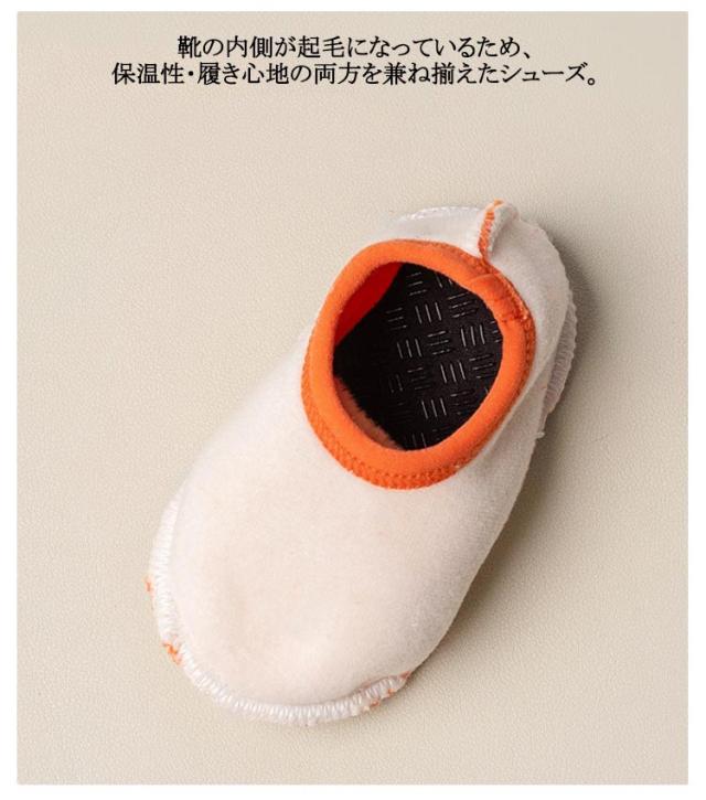 | とってもキュート! アッパーに伸縮性のあるバンドを施すことで脱ぎ履きしやすく・フィット性を高めた優秀デザイン。 靴底に滑り止め加工を施していることで優れたグリップ力を発揮します。 靴の内側が起毛になっているため、保温性・履き心地の両方を兼ね揃えたシューズ。 ユニセックスで履けるカラーでご用意しました。 | |