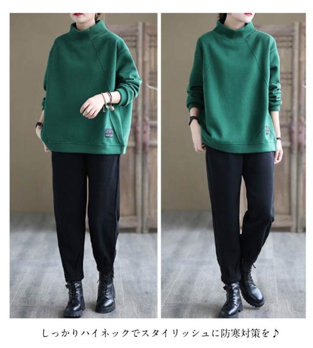 | M-3XL!たっぷりオーバーサイズなハイネックトレーナー やわらかくあたたかい裏起毛素材のプルオーバーです。 注目度の高いハイネックデザインで、トレンド性もプラス。 しっかりハイネックでスタイリッシュに防寒対策を♪ やわらかい質感で、暖かみのある裏起毛素材を使用した着心地の良い一枚に仕上げました。 ボトムスを選ばず、合わせやすい丈感も | |