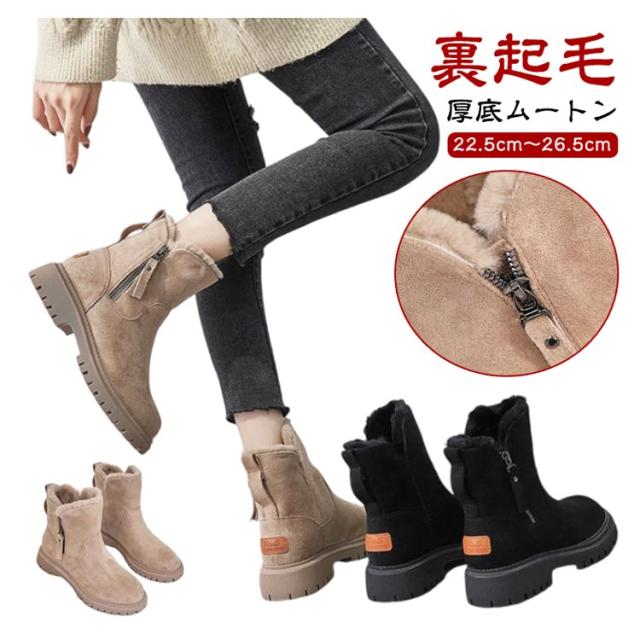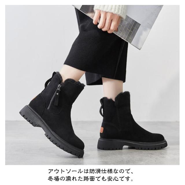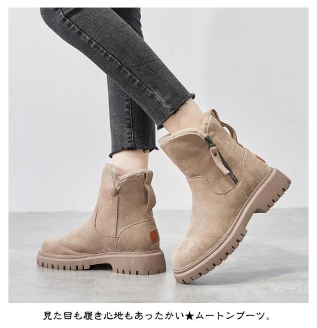 ボア ショートブーツ ぺたんこ ムートンブーツ 女性 裏起毛 シューズ ローヒール ブーツ ムートンブーツ ミドルブーツ 歩きやすい 厚底 ショート スノーブーツ 革靴 ファー付き 滑らない ワークブーツ 防寒 長靴 履きやすい 滑り止め