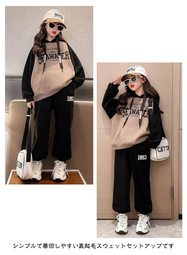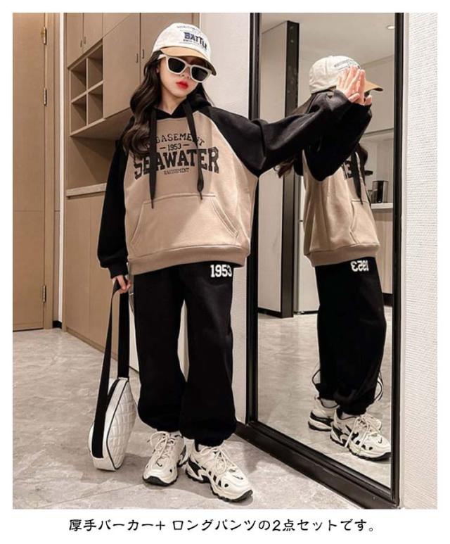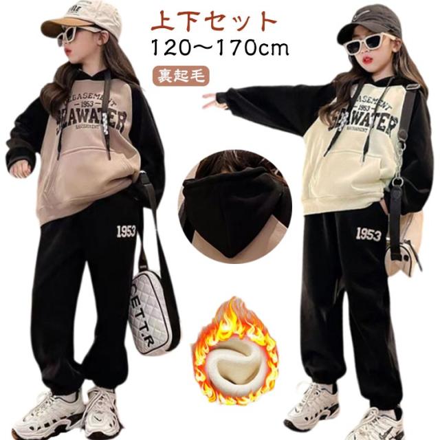 上下セット 防寒 ジャージ キッズ 長袖 パーカー 暖かい 裏起毛 スウェット 女の子 秋冬 ロングパンツ 通学 キッズ 厚手 スウェットパンツ ジュニア ダンス衣装 運動着 子供服 カジュアル おしゃれ セットアップ ルームウェア