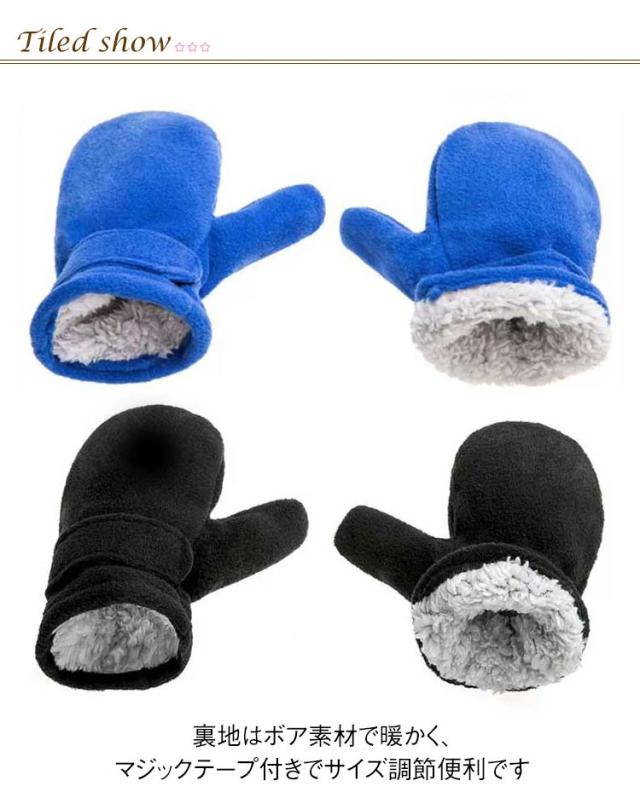 | 子供用のミトン手袋です。 裏地はボア素材で暖かく、マジックテープ付きでサイズ調節便利です 寒さ対策はもちろん、ファッションのアクセントとしても | |