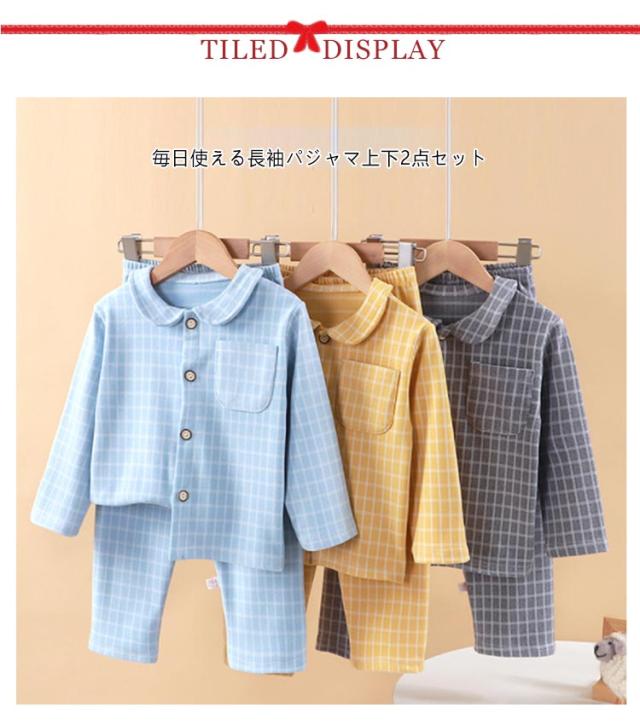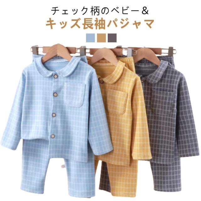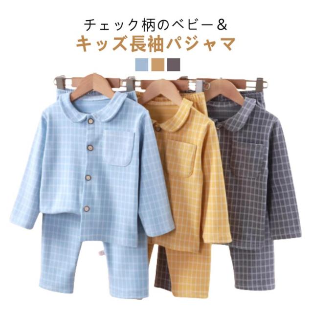 長袖 子供パジャマ 女の子 長袖 パジャマ 上下セット 子供 男の子 キッズ ルームウェア 長袖パジャマ 薄手 子ども こども 子供服 ベビー チェック ベビーパジャマ パジャマ 部屋着 寝巻き セットアップ キッズパジャマ 寝巻 2点