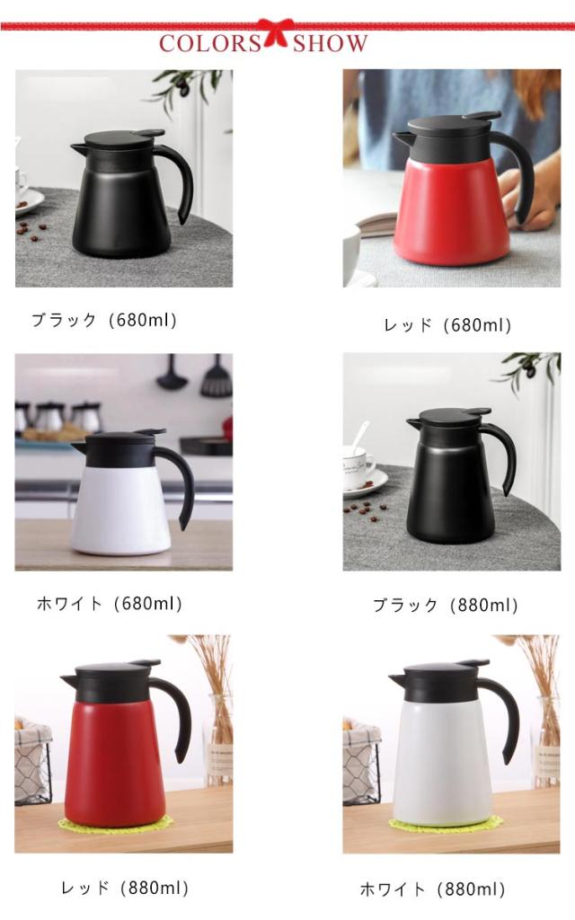 680ml 卓上ポット ブラック 真空二重保温ポット 800ml テーブルポット 保冷 保温ポット ステンレス ホワイト コーヒーサーバー 保温 真空断熱 洗いやすい 直接ドリップ 割れない 広口 0.8L コーヒーポット 卓上ポット 保冷ポット おしゃれ