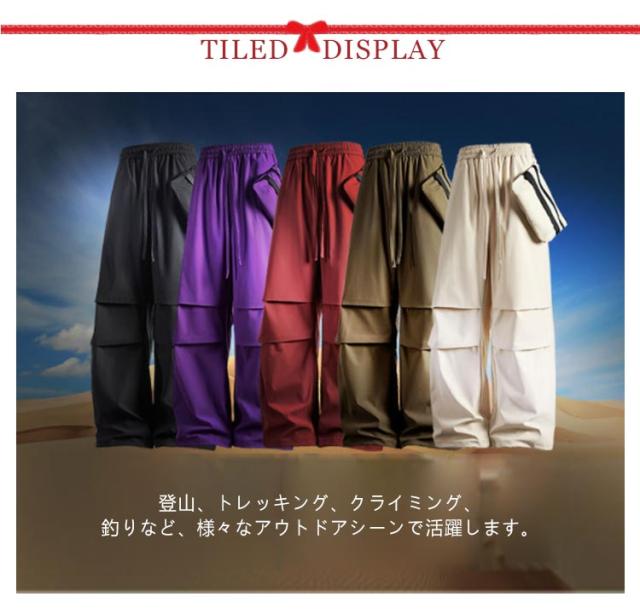 トレッキングパンツ レディース ワークパンツ トレッキングパンツ アウトドアウェア ロングパンツ ゆったり ワイドパンツ 無地 登山 登山パンツ ミニバッグ付き メンズ 男女兼用 春秋 ウエストゴム タックパンツ 撥水 お釣り トレッキング ウェア キャンプ ハイキング