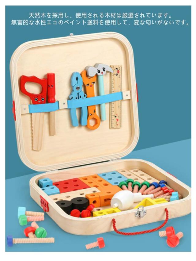 おもちゃ 52点セット 男の子 組み立て モンテッソーリ 工具おもちゃ 52点セット 木製おもちゃ ごっこ遊び 工具 木のおもちゃ 女の子 ままごと 知育玩具 大工さんごっこ 玩具DIY 知育玩具 ツールボックス 子供人気 収納ボックス付き 誕生日 クリスマス