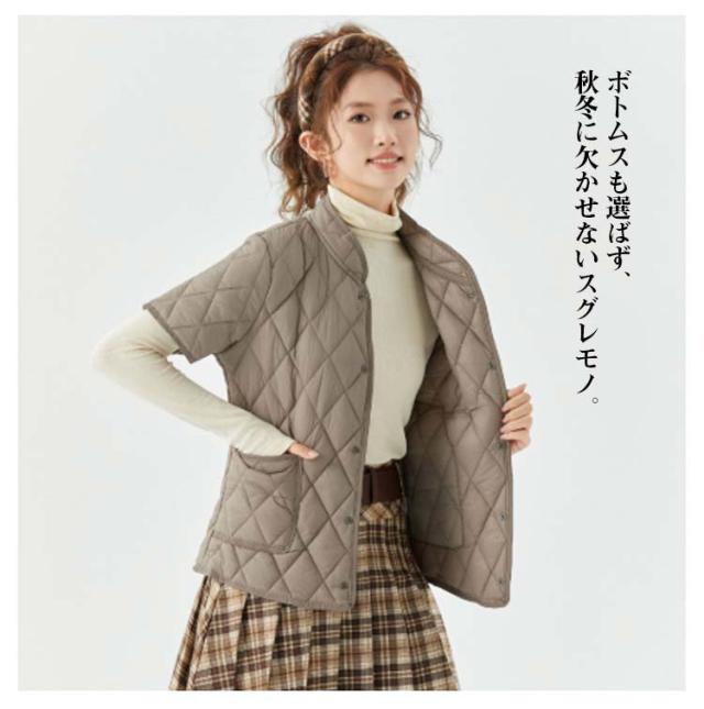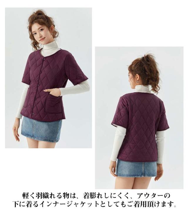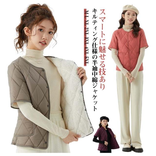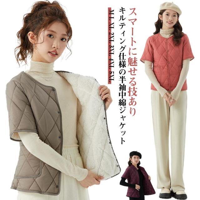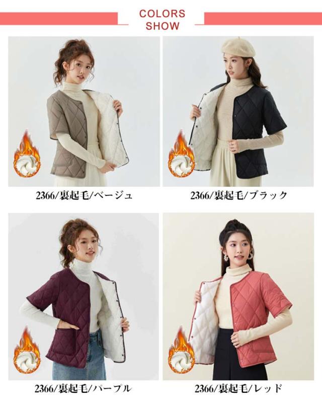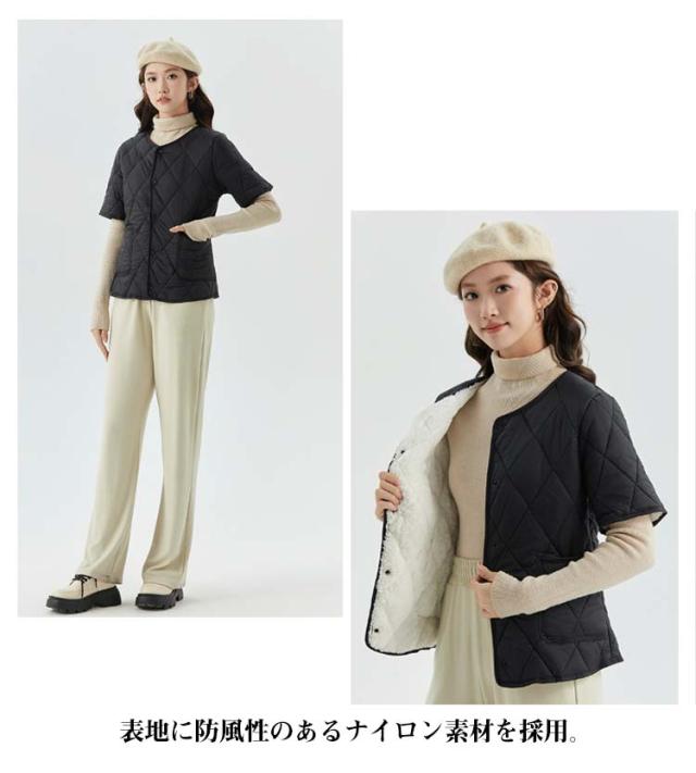 ジャケット ショート丈 ノーカラー 裏ボア 半袖ベスト 重ね着 ジャケット インナージャケット 軽い 半袖 中綿 レディース 軽量 暖かい 半袖ベスト ライトアウター キルティング 羽織り 防寒 ジャケット 秋 冬 部屋着 大きいサイズ 誕生日 プレゼント ギフト