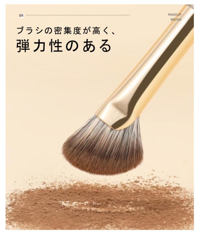 | 「メイクブラシ8本セット」 「収納ポーチ付き」 毛足が長く柔らかいブラシ、優しい肌触り化粧ブラシ。 ふんわり軽いタッチで薄づきなナチャラルメイクに仕上がる。 手になじむ天然木の取手を使用。人間工学に基づいた設計で初心者でも力の加減がしやすい。 ブラシの密集度が高く、弾力性のある 目の周りや小鼻の際にもフィットしやすい設計。 専用のポーチに付き、整理整頓もしやすくなる。 | |